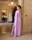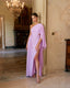 Nuestro vestido largo Valentina es sin duda una de las piezas más elegantes y sofisticadas de la colección. Está confeccionado en crepe y gasa en color malva con una abertura en la pierna. El vestido tiene un escote asimétrico y otra abertura en el costado que resaltará tu silueta. Su detalle más especial es la manga de murciélago en gasa del mismo tono.