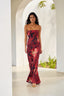 Vestido Habanna Rojo, confeccionado en viscosa con escote palabra de honor y corte évase.
