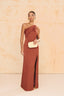 vestido de fiesta whisper marrón ideal para fin de año y cenas de navidad Brown Whisper Dress