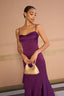 Discover our Georgina dress , made of purple satin , a perfect option to dazzle on any special occasion.