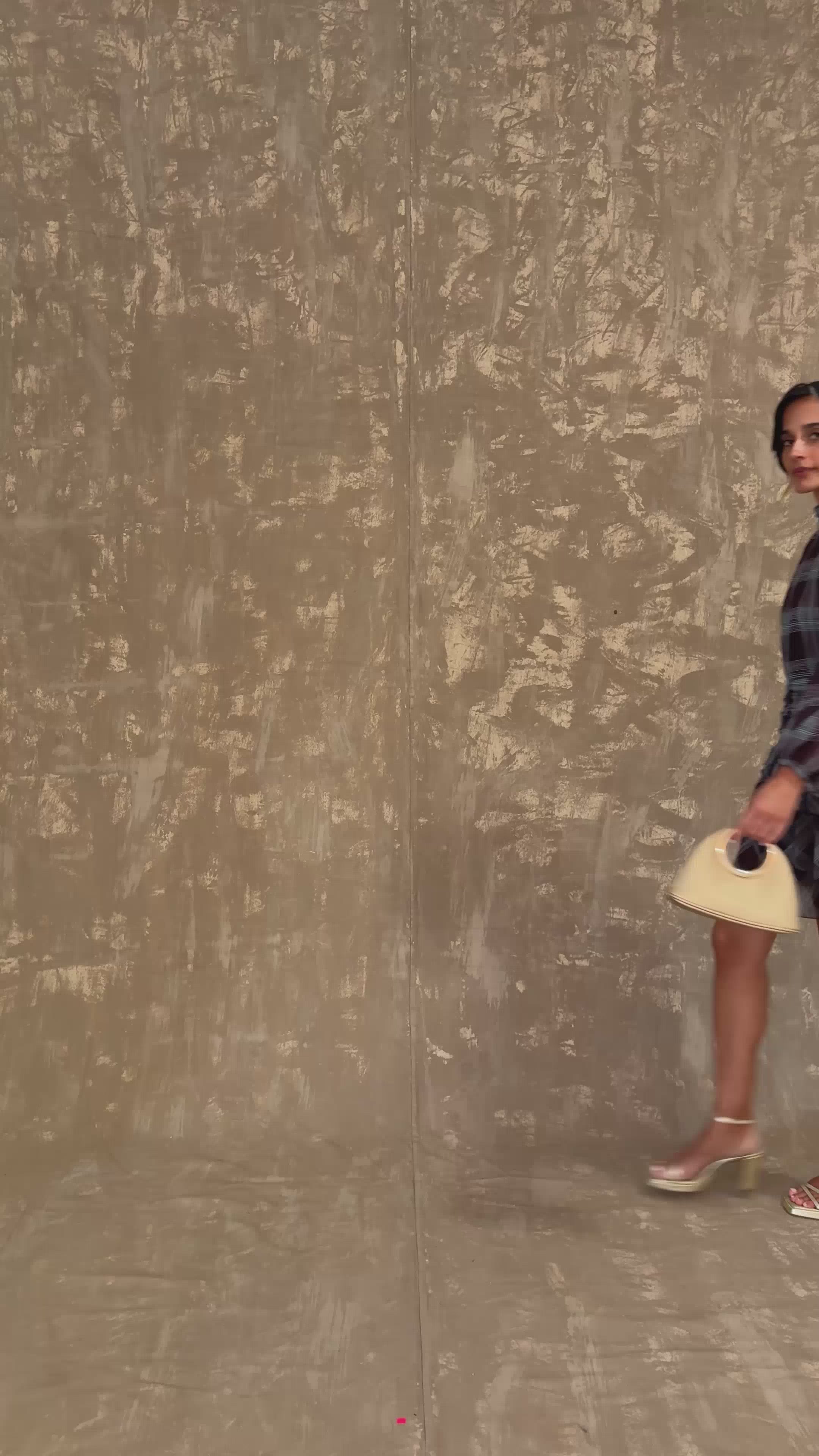 Emilie is a mini dress crafted from brown and blue plaid chiffon , perfect for adding a romantic and sophisticated touch. Its design features a halterneck with three buttons in the back, while the draping at the front adds texture and femininity to the neckline.