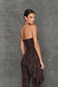 The strapless top adds an original touch to the ensemble with its asymmetric hem that finishes in a unique pleated layer on one side. Reinforced with side boning, it offers structure and support, ensuring a perfect fit.
