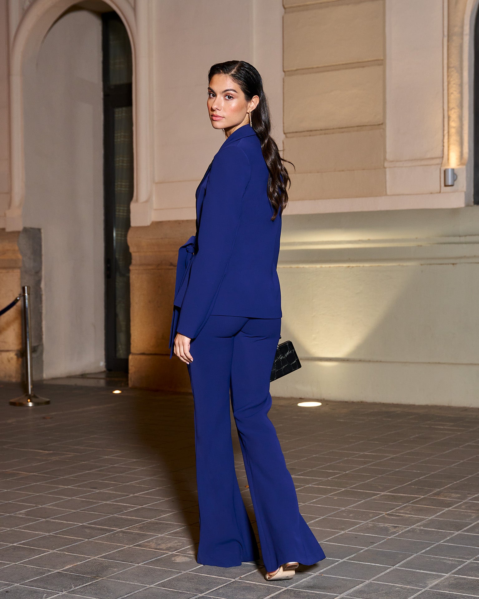 We welcome the Serena pants, in navy blue ! It is made of crepe, it is super comfortable. The pattern of the pants has been carefully designed by our design team so that it fits like a glove. These pants have a flared cut that makes a spectacular figure . The closure is with button and zipper. We have added a thin waistband to make you super comfortable.