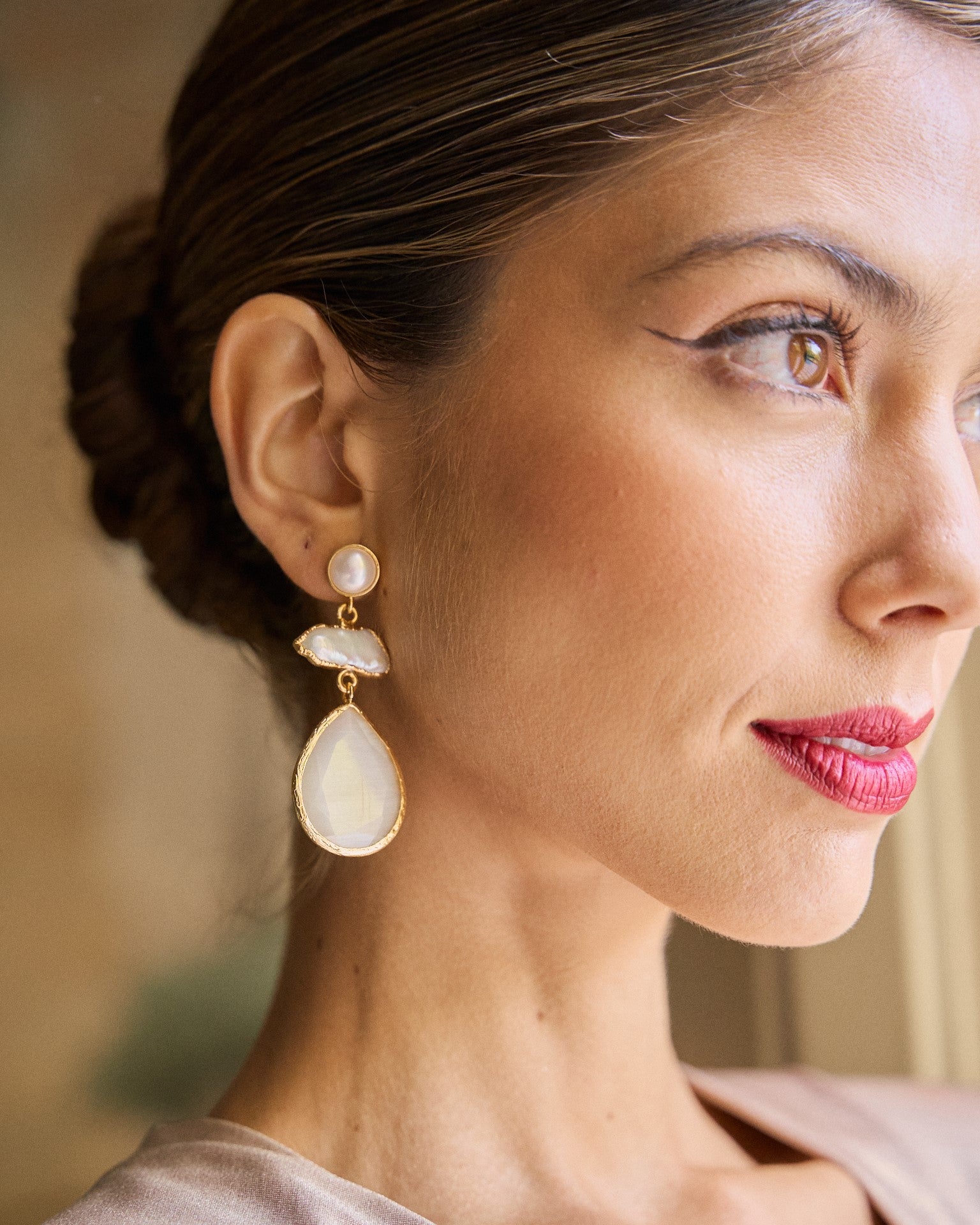 Discover elegance with our Sierpes earrings made with white stone. It has the pearl detail.