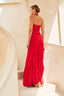 Top Aria en estampado rojo y beige con drapeado en nido de abeja y pantalón flare,  palabra de honor Top Aria en estampado rojo y beige con drapeado en nido de abeja y pantalón flare,  palabra de honor