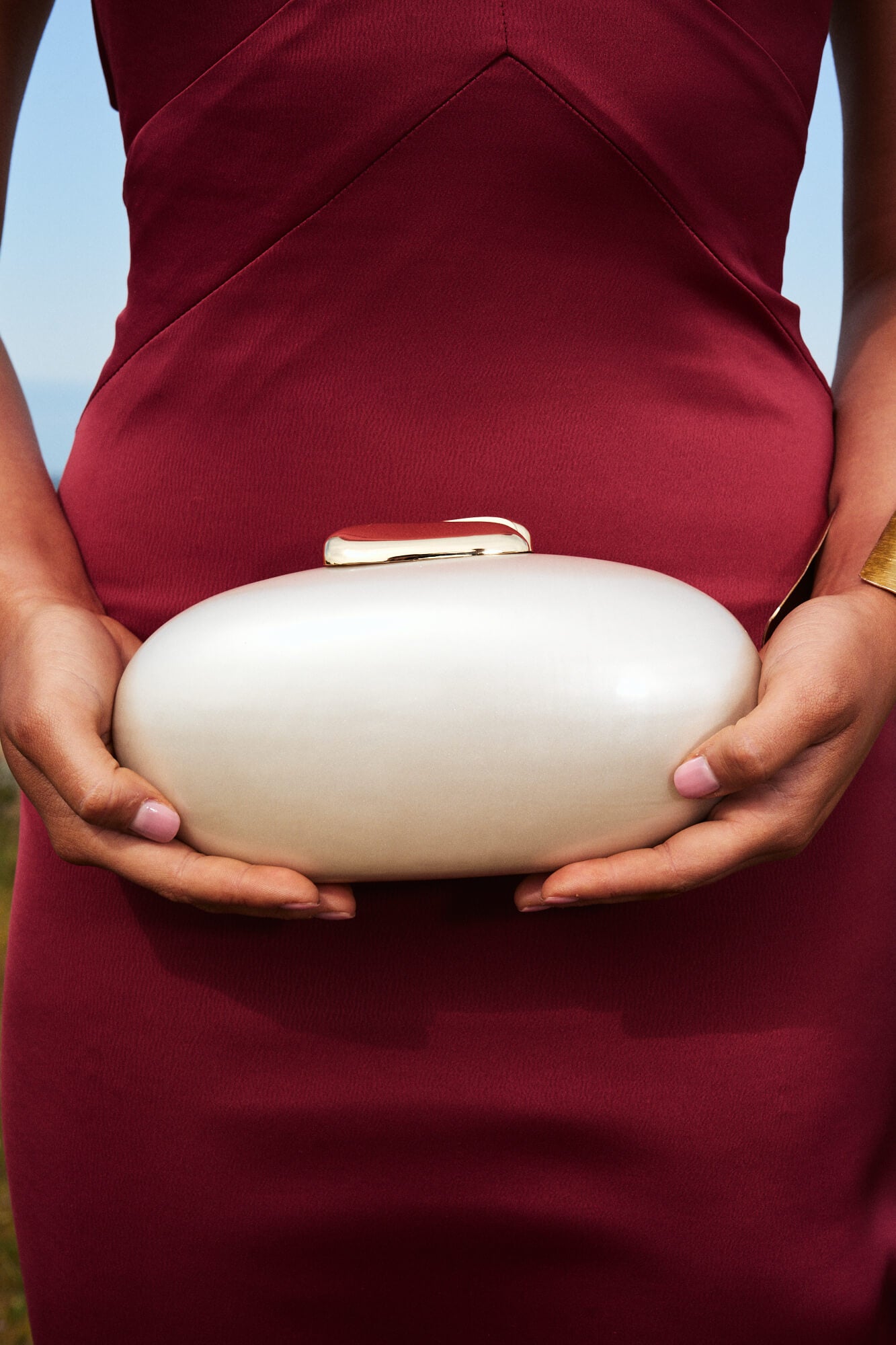 Introducing our Luxe Acrylic Handbag in Pearl Color, an exclusive piece full of elegance. This oval-shaped accessory is perfect for standing out at any special event, adding a vibrant touch to your party look.