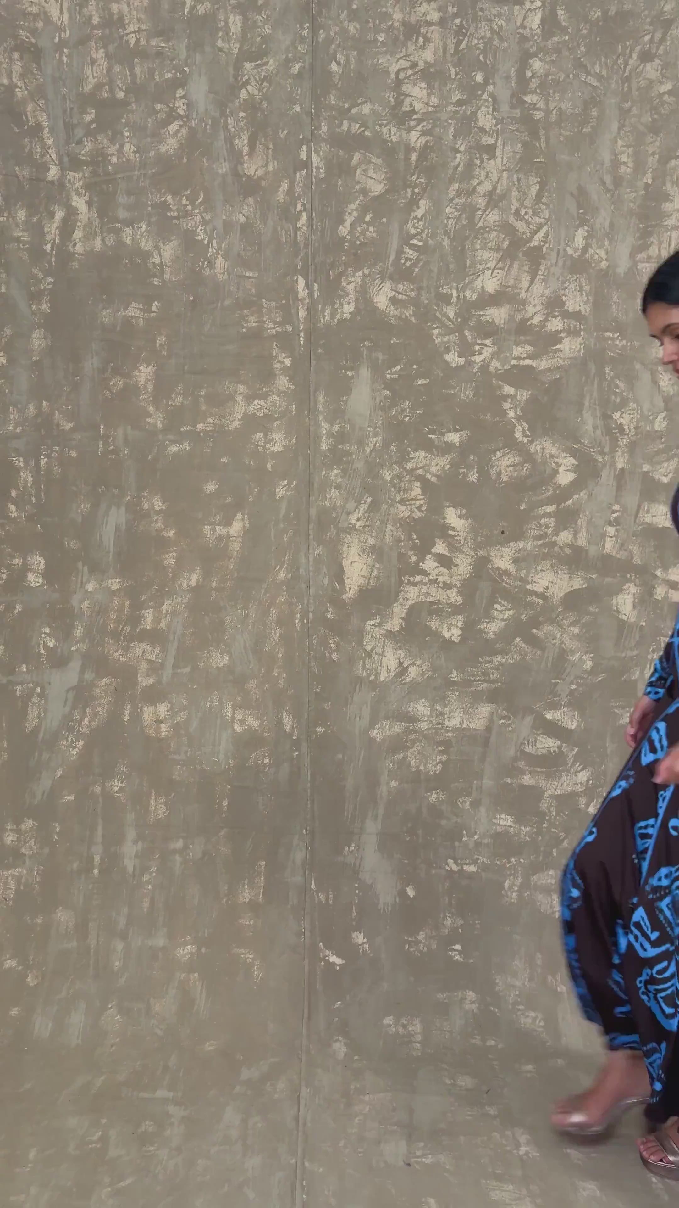 The vibrant blue print on a chocolate brown background is enhanced with decorative piping in the same shade of blue, creating vertical lines that stylize the figure.