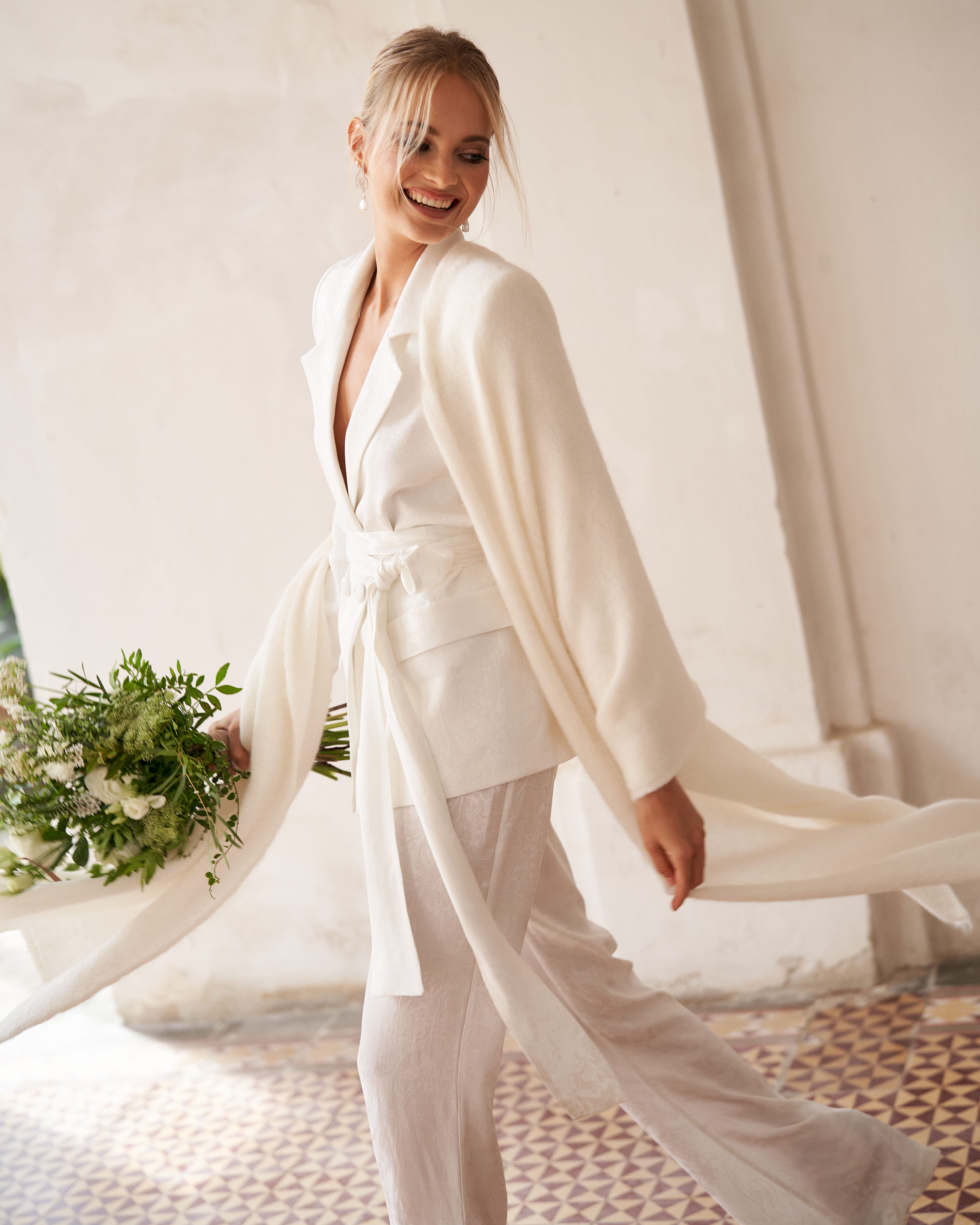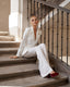 Discover our Mix & Match Chelsea suit: choose between two jacket options — a medieval-inspired jacket or a crossover blazer — or a blouse for the top, and combine with two styles of pants — long flare or shorter bootcut — for the bottom.