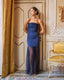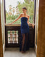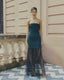 With the spectacular Rose dress in navy blue crepe you will not leave anyone indifferent. Its strapless neckline with a draped tulle lapel and its tulle skirt will make you feel radiant at all your events.