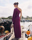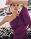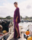 Discover our stunning asymmetrical Olalla long dress in aubergine.