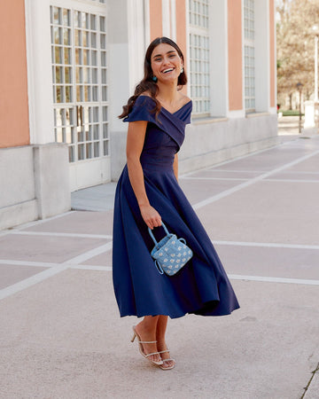 Vestido Invitada Midi Musca Vestido fiesta marino palabra de honor