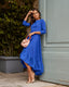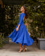 Shine at your next event with the Asymmetrical Paris Electric Blue Dress.