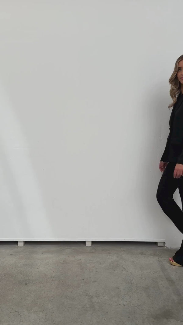 Para un conjunto impecable y de máxima tendencia, recomendamos combinarla con el pantalón flare negro, disponible por separado, creando así un total look que no pasará desapercibido.
