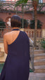 Soy Sandra, un mono de fiesta largo confeccionado en crepe azul marino. Mi corte y estilo es asimétrico, lo que me convierte en la opción perfecta para el entretiempo. Además, mi pantalón es palazzo con sobre capa y tengo un detalle en el cuello tipo crochet. ¡Impresionante!