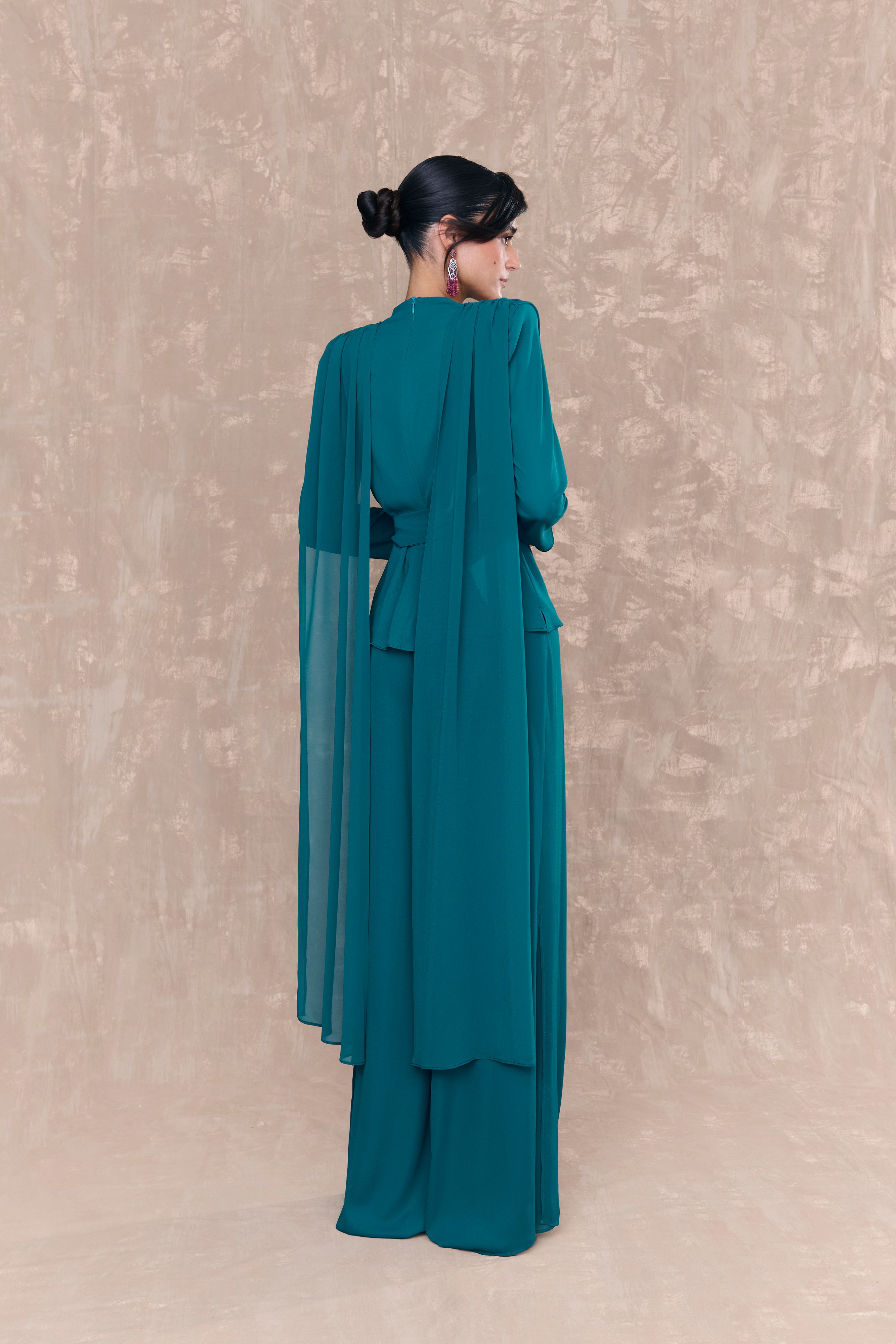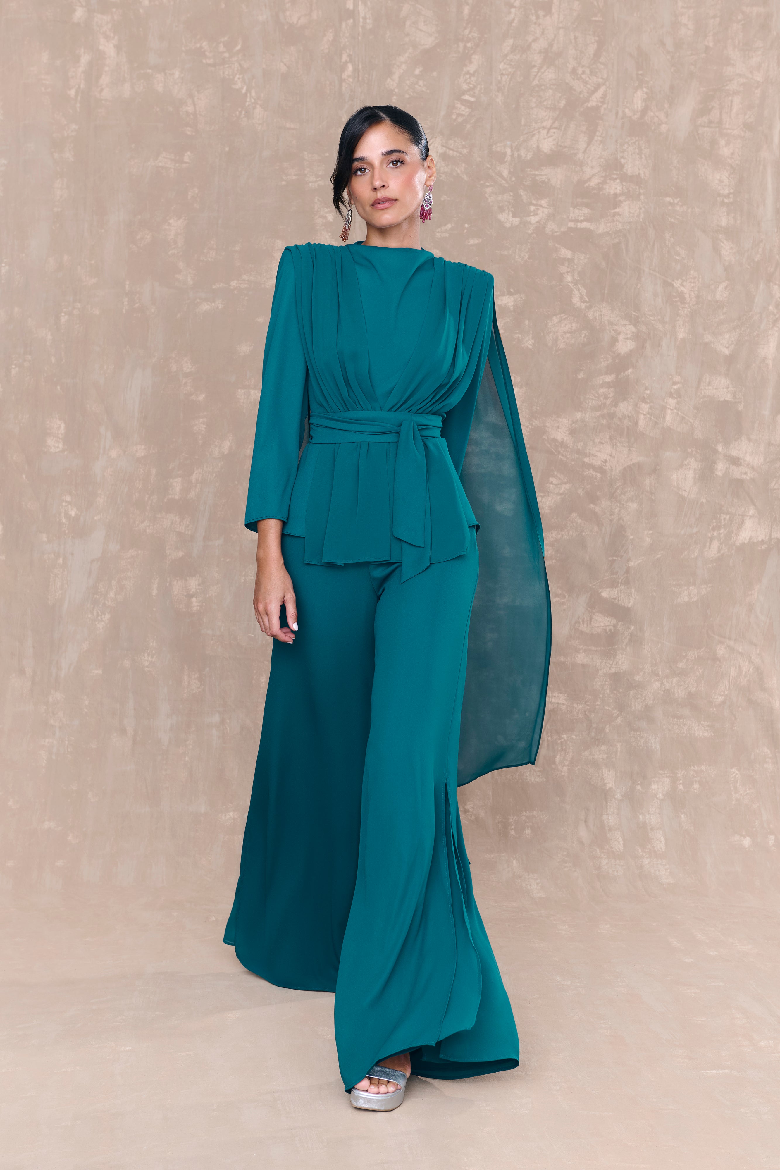 El pantalón Nina Petróleo es una prenda pensada para mujeres que buscan comodidad, movimiento y un estilo sofisticado en ocasiones especiales. Confeccionado en Georgette de alta calidad y con forro interior en gasa tono sobre tono, ofrece una caída fluida que acompaña cada paso con elegancia.