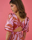 Mono invitada fiesta graduación sol cebra elegante principal  mangas abullonadas pata de elefante escote espalda