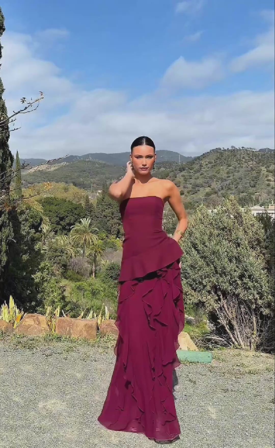 MIPHAI Vestido Orquídea Burdeos Invitada