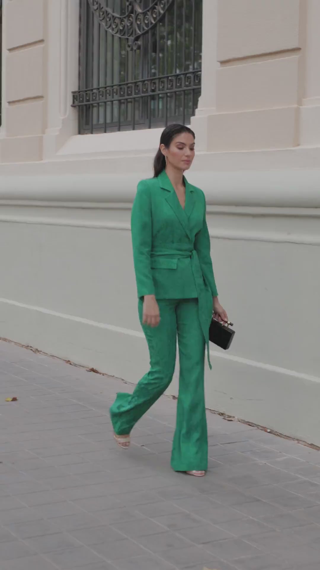 El traje Kate está compuesto por una americana y un pantalón confeccionados en tejido jacquard de alta calidad: 100% viscosa.