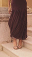 Esta espectacular falda midi, es parte del set Marisol compuesto de top y falda, confeccionado en tul de alta calidad, Esta falda de talle alto destaca por su largo midi y corte godets circular que aporta un sutil vuelo, creando una silueta fluida.