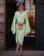 Vestido fiesta invitada Manhattan verde largo  terciopelo escote redondo mangas largas abertura trasera