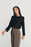 Découvrez le set polyvalent Camden avec sa veste boléro noire et son pantalon carrot gris.