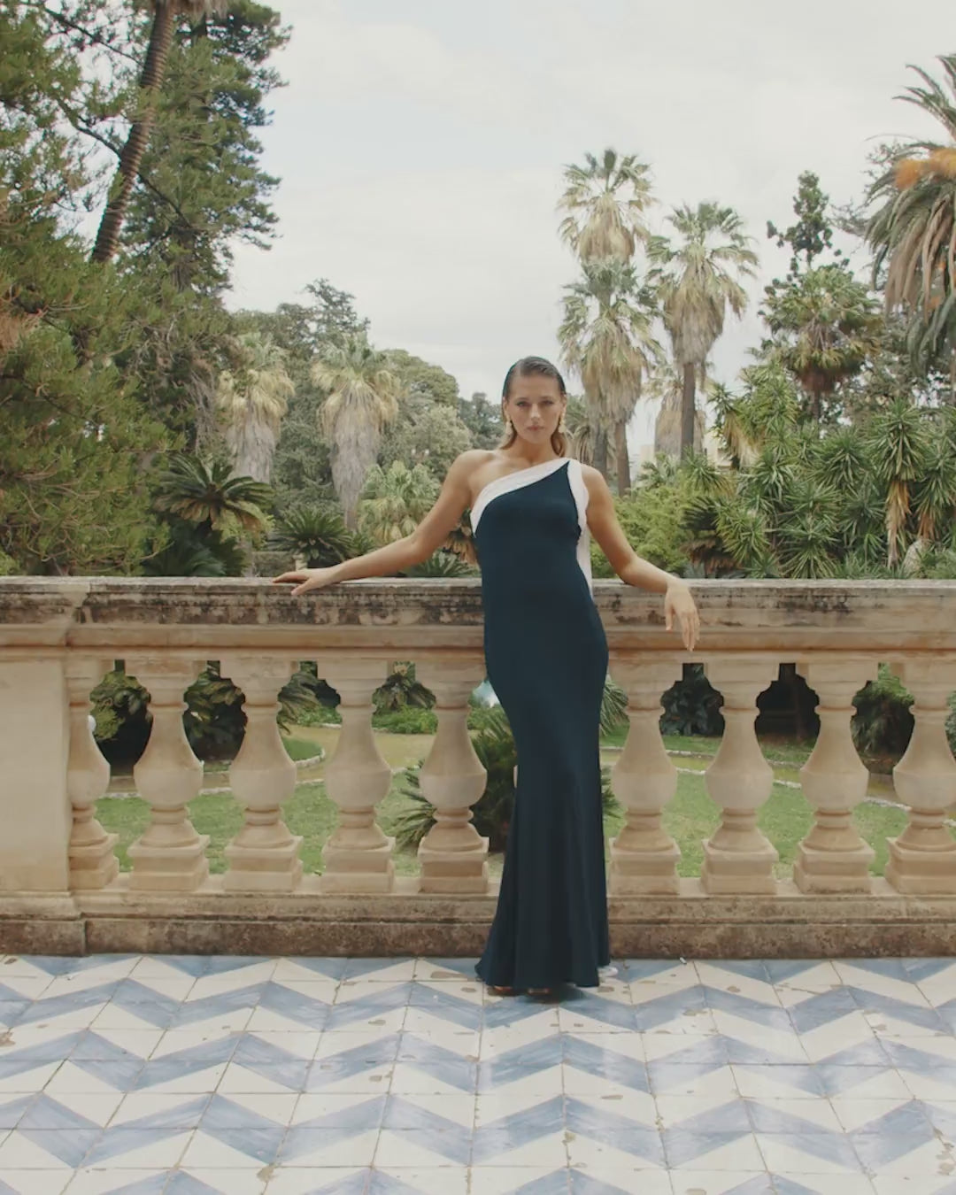 Éblouissez avec notre robe maxi Helena bleu marine.