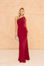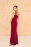 Vestido largo Helena Rojo  en punto liso, con escote asimétrico drapeado y chal de gasa.