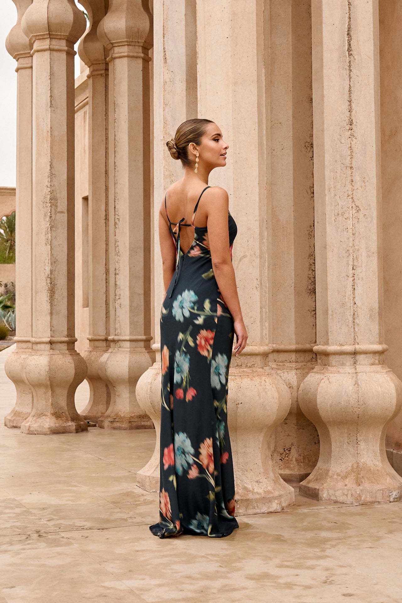 El Vestido Ayla en color azul, es elegante, romántico y atemporal. Su diseño contiene un Estampado Floral Difuminado que aporta diseño y distinción. Este vestido de corte maxi, se ajusta con delicadeza a la silueta, evocando ese toque sensual pero sofisticado sin perder la comodidad. Se sujeta de unos finos tirantes, que forman un escote delantero sutilmente cuadrado y que presenta un escote trasero más amplio y profundo de corte en V decorado con un pequeño anudado en la parte superior de este para crear sujeción y diseño formado por los mismos tirantes; dejando los hombros y la parte superior de la espalda completamente al descubierto, cerrando en la parte de la falda mediante una cremallera invisible.