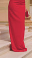Esta espectacular prenda está confeccionada en bielástico y raso de alta calidad. Este cuenta con un elegante escote de  palabra de honor  con hombros caídos de raso rojo. Destacamos de este vestido su estructura con ballenas en el pecho y falda maxi con abertura trasera para una mayor comodidad.